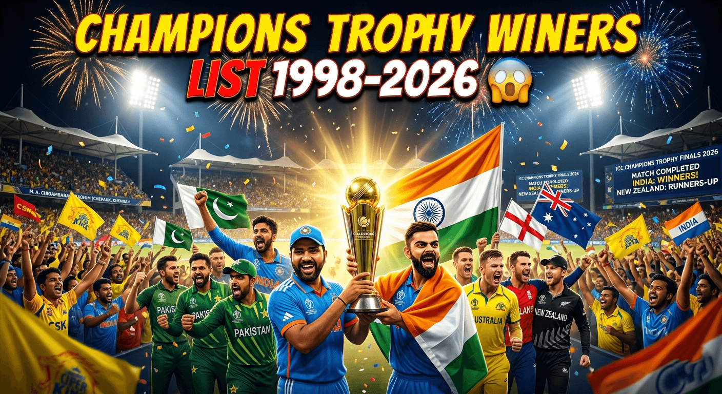 ICC Champions Trophy Winners List (1998–2026) – पूरी कहानी, यादें और रिकॉर्ड